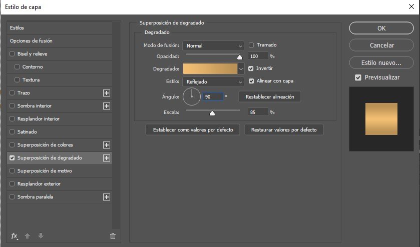 - Apply the same golden gradient and texture style as the logo for visual consistency. But, in this case I have made different adjustments for the gradient.